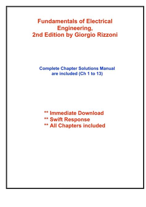 In order to read or download Fundamentals Of Electrical Engineering Rizzoni Solutions Manual Pdf File Type Pdf ebook, you need to create a FREE account.